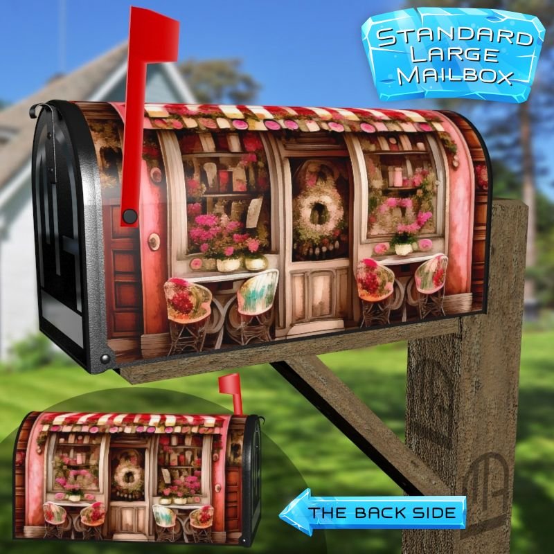 Dressing up your rural farm mailbox with the Cozy Italian Bakery mailbox cover is an easy way to convert it into a unique and special item. These covers require a smooth surface, so they are compatible with rural farm mailboxes that do not have any embossed decorations or signs. Magnetic mailbox covers work with steel boxes only, while self-adhesive vinyl covers are available for aluminum, plastic and steel boxes. If your mailbox is not compatible with these covers, you can purchase a brand new mailbox with a preinstalled cover. Additionally, you have the option to create a custom rural farm mailbox cover with your own pictures, name, street number, etc.