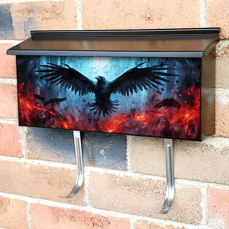 Applying your Craw In A Burning Forest townhouse / ranch mailbox cover it’s pretty easy to convert your mailbox to a special and unique item. These covers require a flat surface, so they work with townhouse / ranch mailboxes that do not have any embossed decoration or signs. Magnetic mailbox covers work with steel boxes, for aluminum and plastic boxes we offer the self-adhesive vinyl covers. In case your mailbox doesn’t work with these covers, you can purchase the preinstalled cover on a brand new mailbox as well. Also, you can create your custom townhouse / ranch mailbox cover using you own pictures, adding your name, street number, etc.