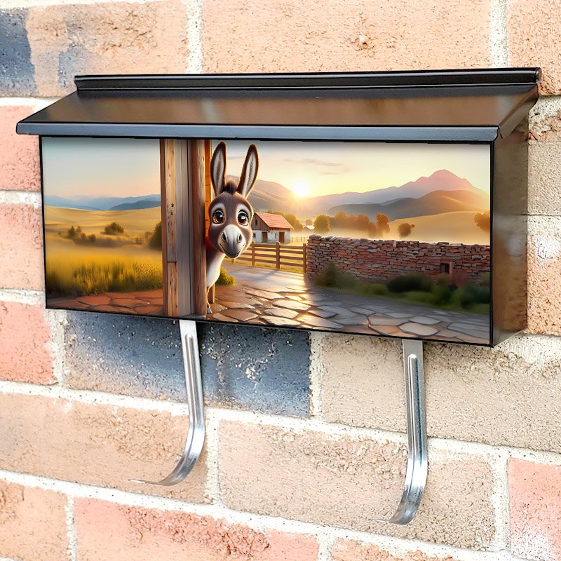 Applying your Curious Farmhouse Donkey townhouse / ranch mailbox cover it’s pretty easy to convert your mailbox to a special and unique item. These covers require a flat surface, so they work with townhouse / ranch mailboxes that do not have any embossed decoration or signs. Magnetic mailbox covers work with steel boxes, for aluminum and plastic boxes we offer the self-adhesive vinyl covers. In case your mailbox doesn’t work with these covers, you can purchase the preinstalled cover on a brand new mailbox as well. Also, you can create your custom townhouse / ranch mailbox cover using you own pictures, adding your name, street number, etc.