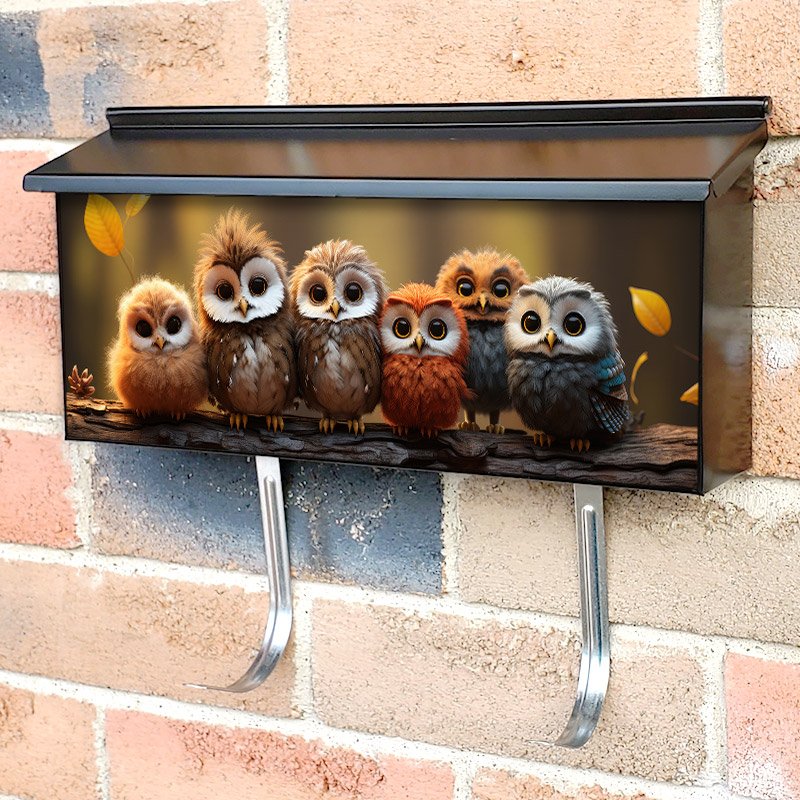 Applying your Cute And Funny Owlets townhouse / ranch mailbox cover it’s pretty easy to convert your mailbox to a special and unique item. These covers require a flat surface, so they work with townhouse / ranch mailboxes that do not have any embossed decoration or signs. Magnetic mailbox covers work with steel boxes, for aluminum and plastic boxes we offer the self-adhesive vinyl covers. In case your mailbox doesn’t work with these covers, you can purchase the preinstalled cover on a brand new mailbox as well. Also, you can create your custom townhouse / ranch mailbox cover using you own pictures, adding your name, street number, etc.