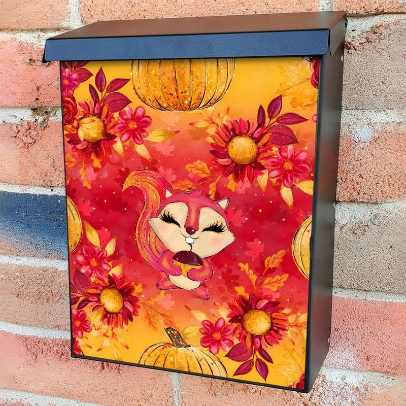 With this Cute Autumn Squirrel colonial mailbox cover it’s pretty easy to convert your mailbox to a special and unique item. These covers require a flat surface, so they work with colonial mailboxes that do not have any embossed decoration or signs. In case your mailbox doesn’t work with these covers, you can purchase the preinstalled cover on a brand new mailbox as well. Also, you can create your custom colonial mailbox cover using you own pictures, adding your name, street number, etc.