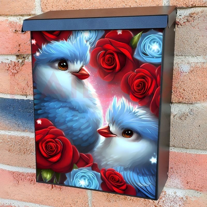 This Cute Bluebird Couple #2 mailbox design was created by Krisztina Soos