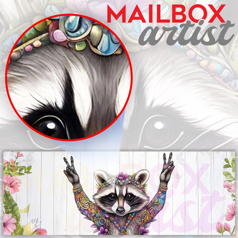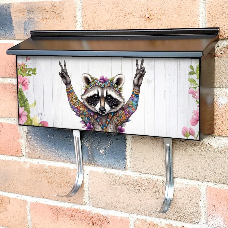 Applying your Cute Bohemian Raccoon townhouse / ranch mailbox cover it’s pretty easy to convert your mailbox to a special and unique item. These covers require a flat surface, so they work with townhouse / ranch mailboxes that do not have any embossed decoration or signs. Magnetic mailbox covers work with steel boxes, for aluminum and plastic boxes we offer the self-adhesive vinyl covers. In case your mailbox doesn’t work with these covers, you can purchase the preinstalled cover on a brand new mailbox as well. Also, you can create your custom townhouse / ranch mailbox cover using you own pictures, adding your name, street number, etc.