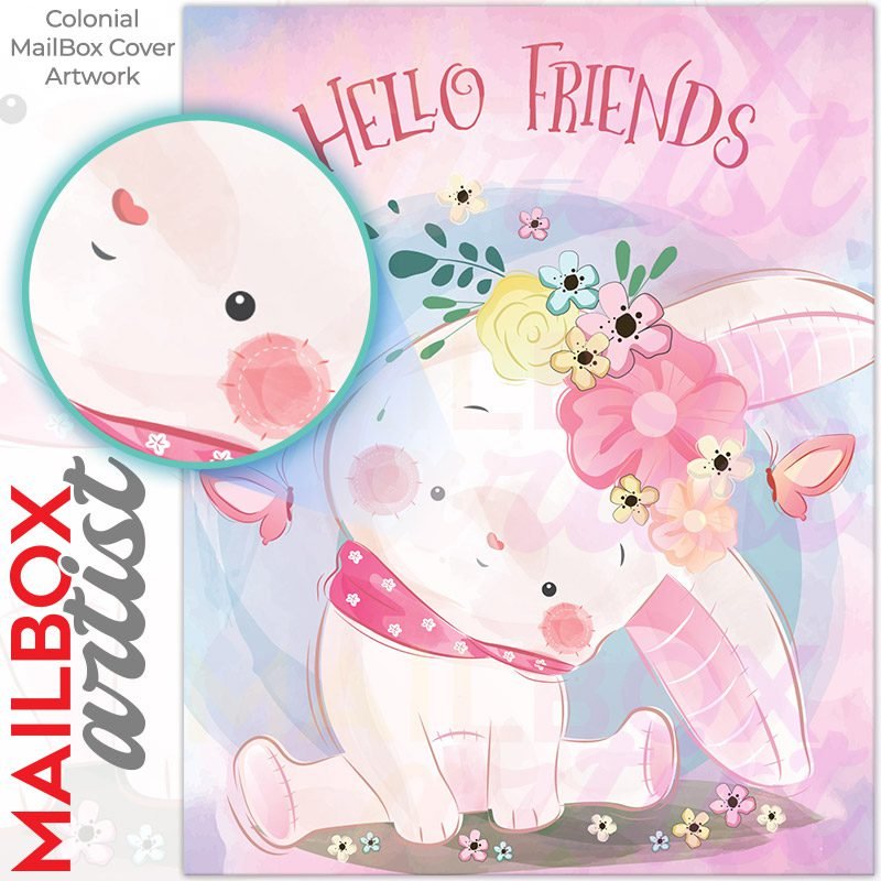 With this Cute Bunny and Butterflies colonial mailbox cover it’s pretty easy to convert your mailbox to a special and unique item. These covers require a flat surface, so they work with colonial mailboxes that do not have any embossed decoration or signs. Magnetic mailbox covers work with steel colonial boxes only, while self-adhesive vinyl covers are available for aluminum, plastic and steel boxes. We also offer both self-adhesive and magnetic covers with regular opaque white vinyl or reflective vinyl, which works similarly to license plates or road signs. The reflective option makes the entire cover’s surface reflective, ensuring visibility at night. In case your mailbox doesn’t work with these covers, you can purchase the preinstalled cover on a brand new mailbox as well. Also, you can create your custom colonial mailbox cover using you own pictures, adding your name, street number, etc.