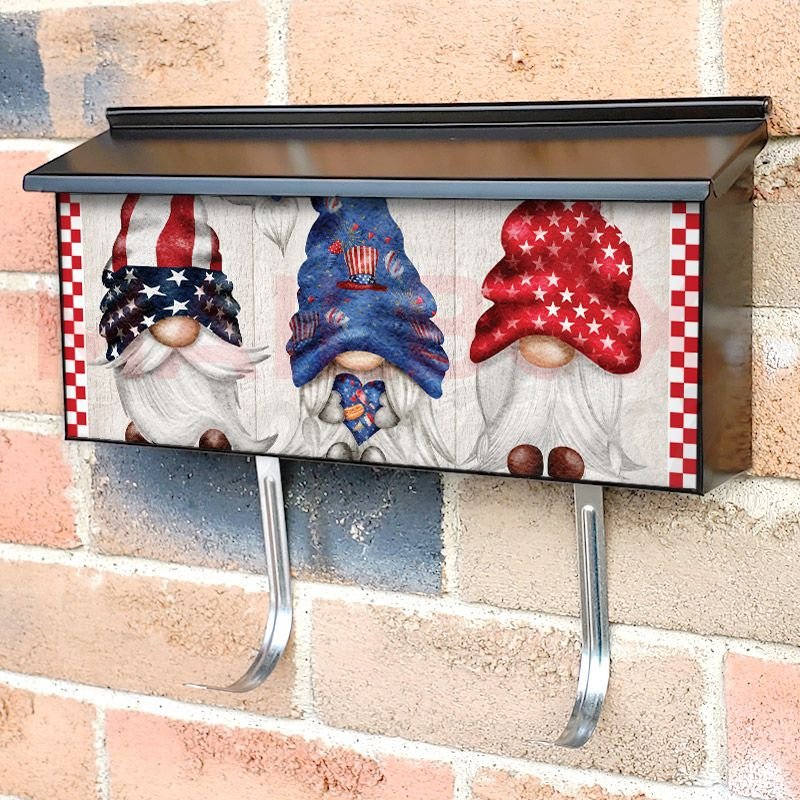 Applying your Cute Canadian Gnomes townhouse / ranch mailbox cover it’s pretty easy to convert your mailbox to a special and unique item. These covers require a flat surface, so they work with townhouse / ranch mailboxes that do not have any embossed decoration or signs. Magnetic mailbox covers work with steel boxes, for aluminum and plastic boxes we offer the self-adhesive vinyl covers. In case your mailbox doesn’t work with these covers, you can purchase the preinstalled cover on a brand new mailbox as well. Also, you can create your custom townhouse / ranch mailbox cover using you own pictures, adding your name, street number, etc.