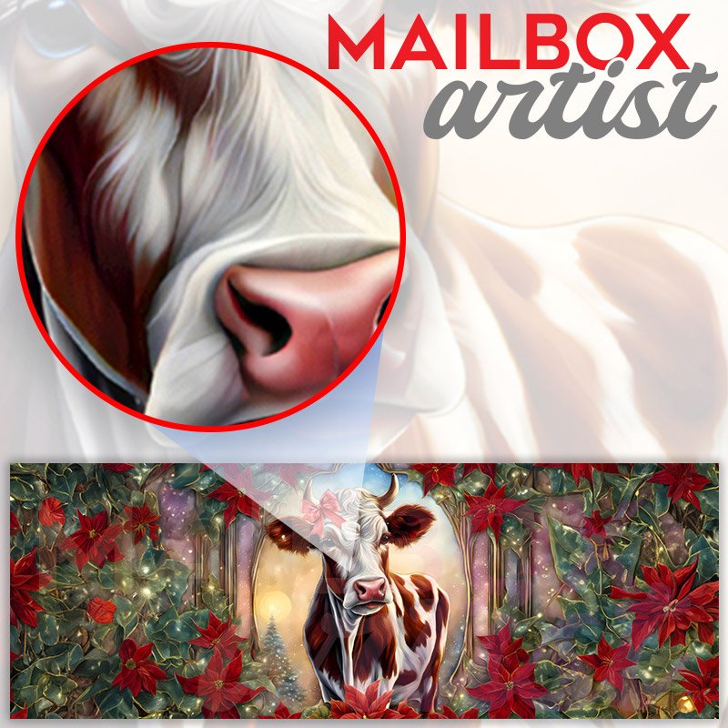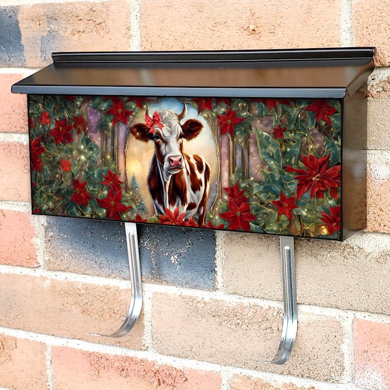 Applying your Cute Christmas Cow Girl townhouse / ranch mailbox cover it’s pretty easy to convert your mailbox to a special and unique item. These covers require a flat surface, so they work with townhouse / ranch mailboxes that do not have any embossed decoration or signs. Magnetic mailbox covers work with steel boxes, for aluminum and plastic boxes we offer the self-adhesive vinyl covers. In case your mailbox doesn’t work with these covers, you can purchase the preinstalled cover on a brand new mailbox as well. Also, you can create your custom townhouse / ranch mailbox cover using you own pictures, adding your name, street number, etc.