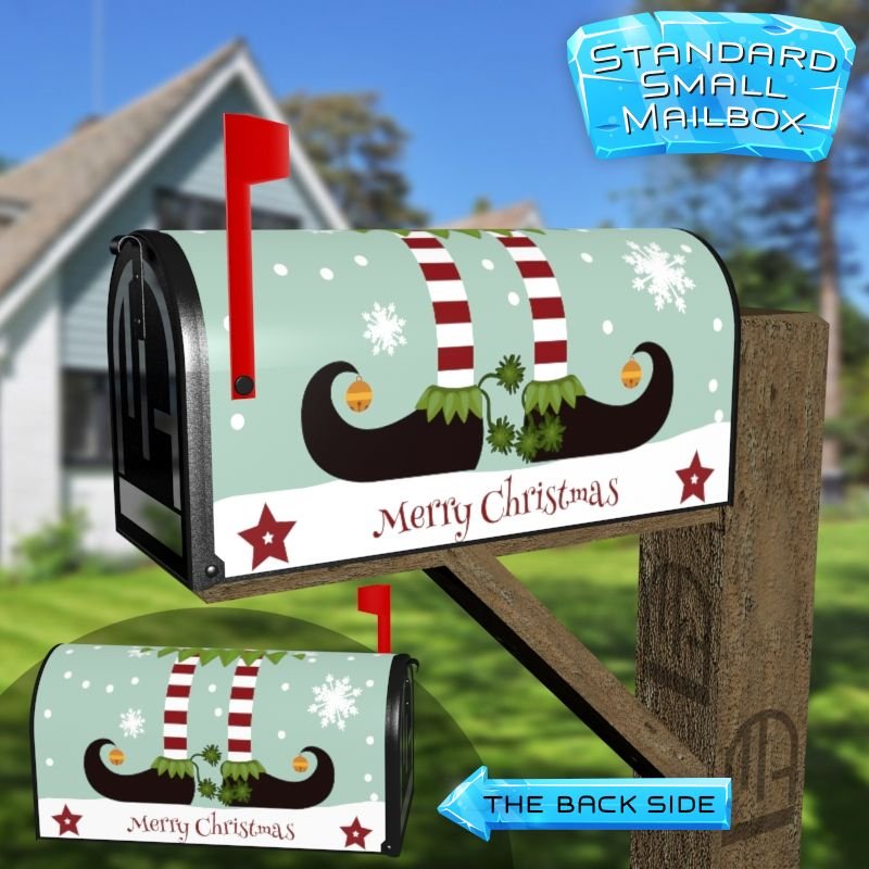 Dressing up your rural farm mailbox with the Cute Christmas Elf Legs mailbox cover is an easy way to convert it into a unique and special item. These covers require a smooth surface, so they are compatible with rural farm mailboxes that do not have any embossed decorations or signs. Magnetic mailbox covers work with steel boxes only, while self-adhesive vinyl covers are available for aluminum, plastic and steel boxes. If your mailbox is not compatible with these covers, you can purchase a brand new mailbox with a preinstalled cover. Additionally, you have the option to create a custom rural farm mailbox cover with your own pictures, name, street number, etc.