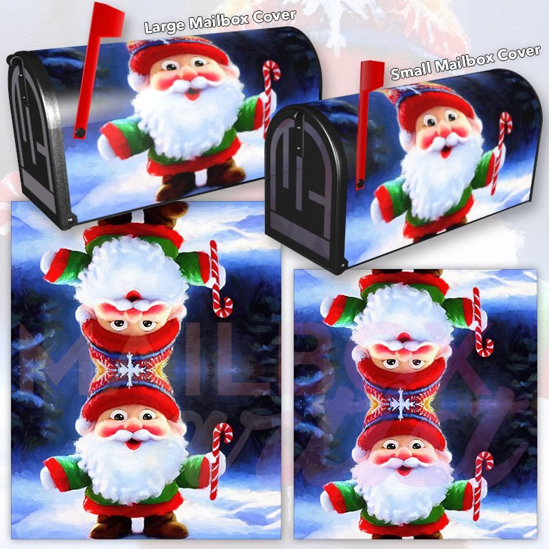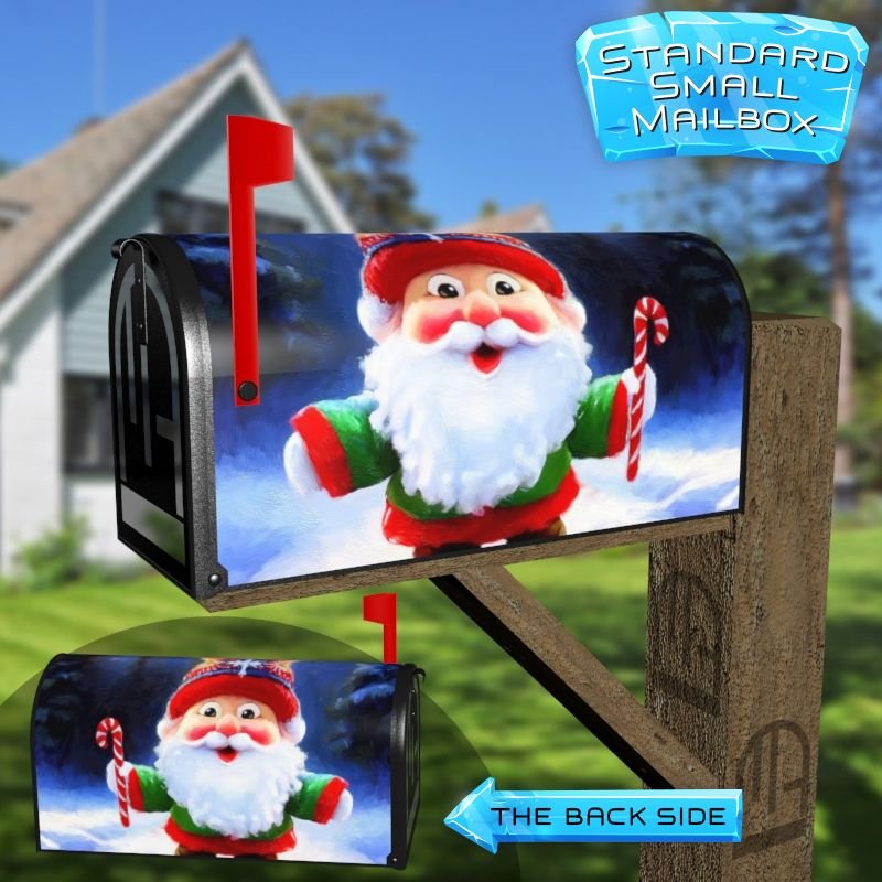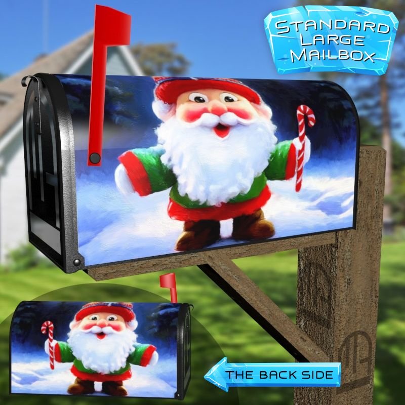Dressing up your rural farm mailbox with the Cute Christmas Gnome #3 mailbox cover is an easy way to convert it into a unique and special item. These covers require a smooth surface, so they are compatible with rural farm mailboxes that do not have any embossed decorations or signs. Magnetic mailbox covers work with steel boxes only, while self-adhesive vinyl covers are available for aluminum, plastic and steel boxes. If your mailbox is not compatible with these covers, you can purchase a brand new mailbox with a preinstalled cover. Additionally, you have the option to create a custom rural farm mailbox cover with your own pictures, name, street number, etc.