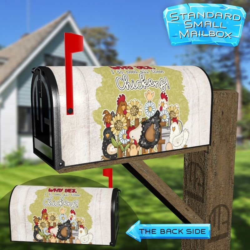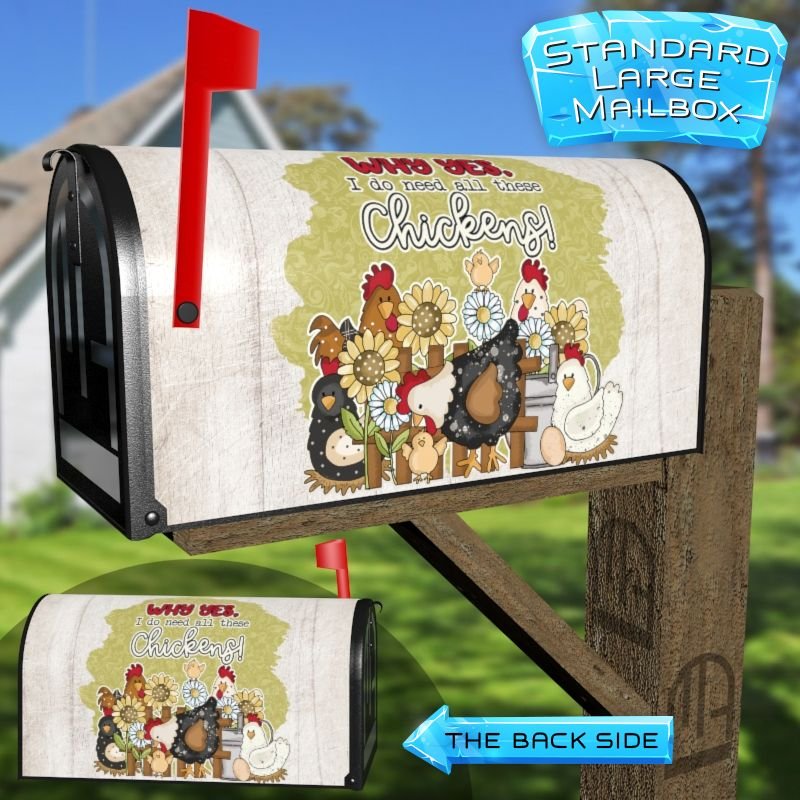 Dressing up your rural farm mailbox with the Cute Country Chickens mailbox cover is an easy way to convert it into a unique and special item. These covers require a smooth surface, so they are compatible with rural farm mailboxes that do not have any embossed decorations or signs. Magnetic mailbox covers work with steel boxes only, while self-adhesive vinyl covers are available for aluminum, plastic and steel boxes. If your mailbox is not compatible with these covers, you can purchase a brand new mailbox with a preinstalled cover. Additionally, you have the option to create a custom rural farm mailbox cover with your own pictures, name, street number, etc.