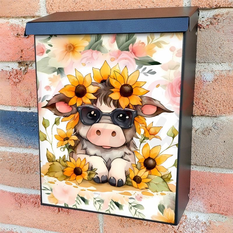 This Cute Cow and Sunflowers mailbox design was created by Krisztina Soos