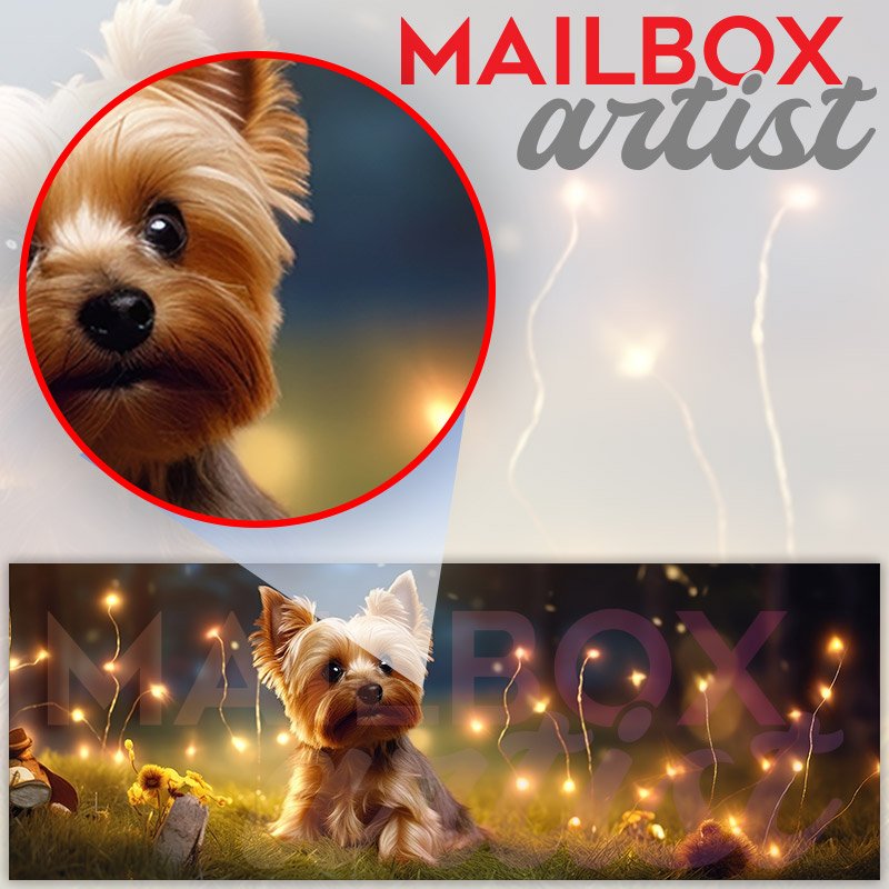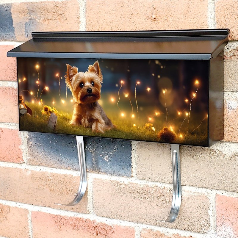 Applying your Cute Dog With Magical Lights 4 townhouse / ranch mailbox cover it’s pretty easy to convert your mailbox to a special and unique item. These covers require a flat surface, so they work with townhouse / ranch mailboxes that do not have any embossed decoration or signs. Magnetic mailbox covers work with steel boxes, for aluminum and plastic boxes we offer the self-adhesive vinyl covers. In case your mailbox doesn’t work with these covers, you can purchase the preinstalled cover on a brand new mailbox as well. Also, you can create your custom townhouse / ranch mailbox cover using you own pictures, adding your name, street number, etc.