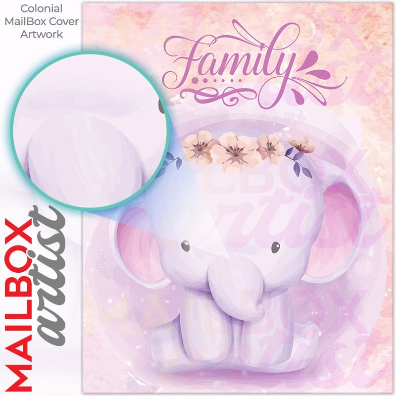 With this Cute Elephant with Flowers colonial mailbox cover it’s pretty easy to convert your mailbox to a special and unique item. These covers require a flat surface, so they work with colonial mailboxes that do not have any embossed decoration or signs. Magnetic mailbox covers work with steel colonial boxes only, while self-adhesive vinyl covers are available for aluminum, plastic and steel boxes. We also offer both self-adhesive and magnetic covers with regular opaque white vinyl or reflective vinyl, which works similarly to license plates or road signs. The reflective option makes the entire cover’s surface reflective, ensuring visibility at night. In case your mailbox doesn’t work with these covers, you can purchase the preinstalled cover on a brand new mailbox as well. Also, you can create your custom colonial mailbox cover using you own pictures, adding your name, street number, etc.
