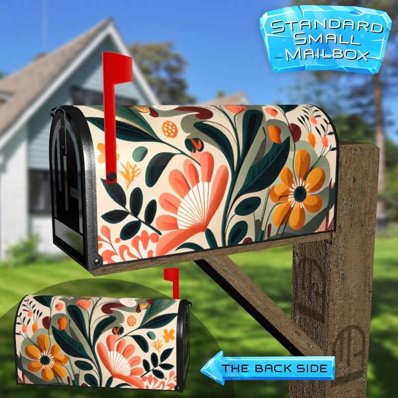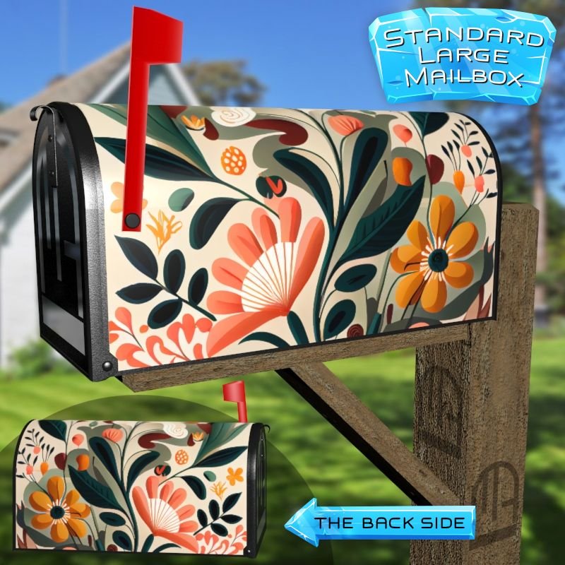 Dressing up your rural farm mailbox with the Cute Folklore Flowers #2 mailbox cover is an easy way to convert it into a unique and special item. These covers require a smooth surface, so they are compatible with rural farm mailboxes that do not have any embossed decorations or signs. Magnetic mailbox covers work with steel boxes only, while self-adhesive vinyl covers are available for aluminum, plastic and steel boxes. If your mailbox is not compatible with these covers, you can purchase a brand new mailbox with a preinstalled cover. Additionally, you have the option to create a custom rural farm mailbox cover with your own pictures, name, street number, etc.