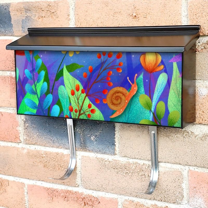 Applying your Cute Garden Flowers with a Snail townhouse / ranch mailbox cover it’s pretty easy to convert your mailbox to a special and unique item. These covers require a flat surface, so they work with townhouse / ranch mailboxes that do not have any embossed decoration or signs. Magnetic mailbox covers work with steel boxes, for aluminum and plastic boxes we offer the self-adhesive vinyl covers. In case your mailbox doesn’t work with these covers, you can purchase the preinstalled cover on a brand new mailbox as well. Also, you can create your custom townhouse / ranch mailbox cover using you own pictures, adding your name, street number, etc.