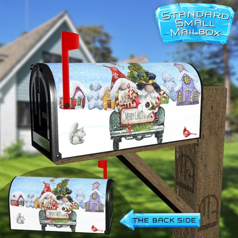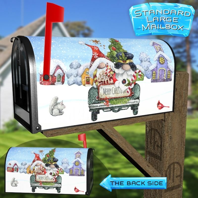 Dressing up your rural farm mailbox with the Cute Gnomes in the Christmas Truck mailbox cover is an easy way to convert it into a unique and special item. These covers require a smooth surface, so they are compatible with rural farm mailboxes that do not have any embossed decorations or signs. Magnetic mailbox covers work with steel boxes only, while self-adhesive vinyl covers are available for aluminum, plastic and steel boxes. If your mailbox is not compatible with these covers, you can purchase a brand new mailbox with a preinstalled cover. Additionally, you have the option to create a custom rural farm mailbox cover with your own pictures, name, street number, etc.