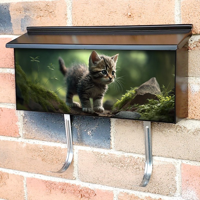 Applying your Cute Gray Kitten On Nature townhouse / ranch mailbox cover it’s pretty easy to convert your mailbox to a special and unique item. These covers require a flat surface, so they work with townhouse / ranch mailboxes that do not have any embossed decoration or signs. Magnetic mailbox covers work with steel boxes, for aluminum and plastic boxes we offer the self-adhesive vinyl covers. In case your mailbox doesn’t work with these covers, you can purchase the preinstalled cover on a brand new mailbox as well. Also, you can create your custom townhouse / ranch mailbox cover using you own pictures, adding your name, street number, etc.