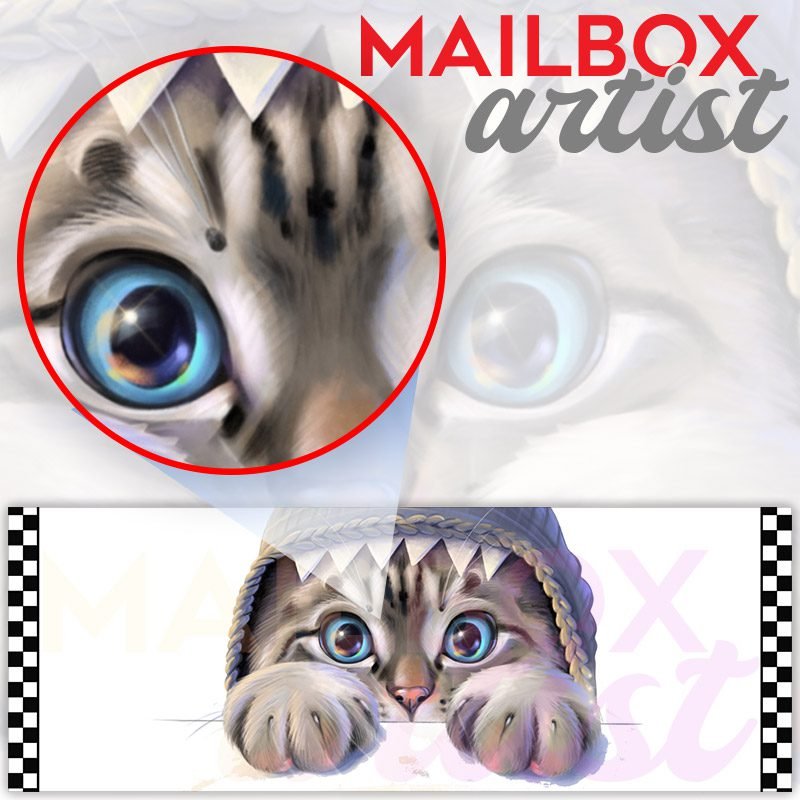 Applying your Cute Hungry Tabby Cat townhouse / ranch mailbox cover it’s pretty easy to convert your mailbox to a special and unique item. These covers require a flat surface, so they work with townhouse / ranch mailboxes that do not have any embossed decoration or signs. Magnetic mailbox covers work with steel boxes, for aluminum and plastic boxes we offer the self-adhesive vinyl covers. In case your mailbox doesn’t work with these covers, you can purchase the preinstalled cover on a brand new mailbox as well. Also, you can create your custom townhouse / ranch mailbox cover using you own pictures, adding your name, street number, etc.