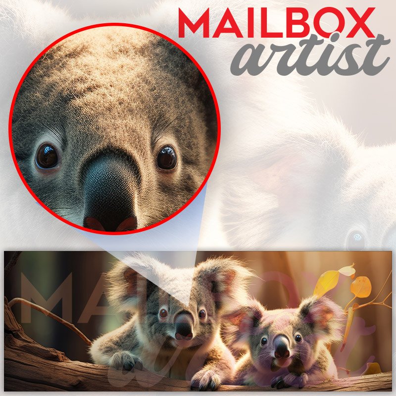 Applying your Cute Koala On Branch Of Eucalyptus Tree townhouse / ranch mailbox cover it’s pretty easy to convert your mailbox to a special and unique item. These covers require a flat surface, so they work with townhouse / ranch mailboxes that do not have any embossed decoration or signs. Magnetic mailbox covers work with steel boxes, for aluminum and plastic boxes we offer the self-adhesive vinyl covers. In case your mailbox doesn’t work with these covers, you can purchase the preinstalled cover on a brand new mailbox as well. Also, you can create your custom townhouse / ranch mailbox cover using you own pictures, adding your name, street number, etc.