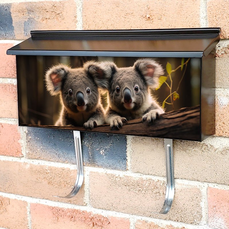 Applying your Cute Koalas On Branch Of Eucalyptus Tree townhouse / ranch mailbox cover it’s pretty easy to convert your mailbox to a special and unique item. These covers require a flat surface, so they work with townhouse / ranch mailboxes that do not have any embossed decoration or signs. Magnetic mailbox covers work with steel boxes, for aluminum and plastic boxes we offer the self-adhesive vinyl covers. In case your mailbox doesn’t work with these covers, you can purchase the preinstalled cover on a brand new mailbox as well. Also, you can create your custom townhouse / ranch mailbox cover using you own pictures, adding your name, street number, etc.