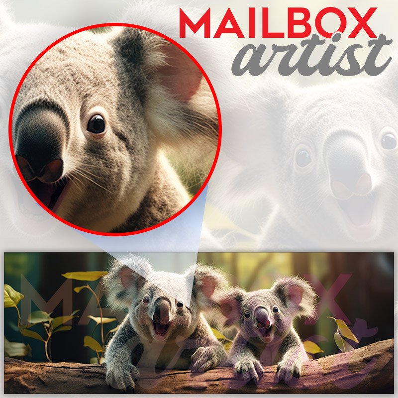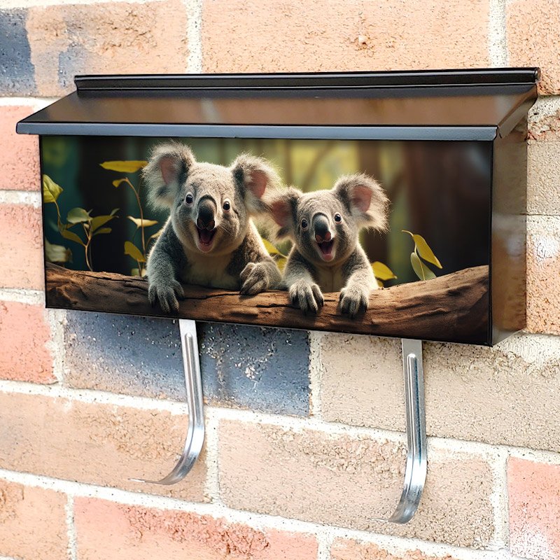Applying your Cute Koalas On Eucalyptus Tree Branch townhouse / ranch mailbox cover it’s pretty easy to convert your mailbox to a special and unique item. These covers require a flat surface, so they work with townhouse / ranch mailboxes that do not have any embossed decoration or signs. Magnetic mailbox covers work with steel boxes, for aluminum and plastic boxes we offer the self-adhesive vinyl covers. In case your mailbox doesn’t work with these covers, you can purchase the preinstalled cover on a brand new mailbox as well. Also, you can create your custom townhouse / ranch mailbox cover using you own pictures, adding your name, street number, etc.