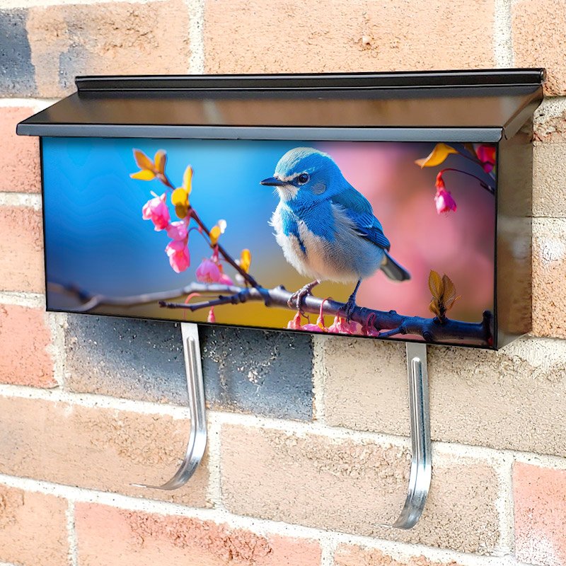 Applying your Cute Little Bird On Tree Branch townhouse / ranch mailbox cover it’s pretty easy to convert your mailbox to a special and unique item. These covers require a flat surface, so they work with townhouse / ranch mailboxes that do not have any embossed decoration or signs. Magnetic mailbox covers work with steel boxes, for aluminum and plastic boxes we offer the self-adhesive vinyl covers. In case your mailbox doesn’t work with these covers, you can purchase the preinstalled cover on a brand new mailbox as well. Also, you can create your custom townhouse / ranch mailbox cover using you own pictures, adding your name, street number, etc.