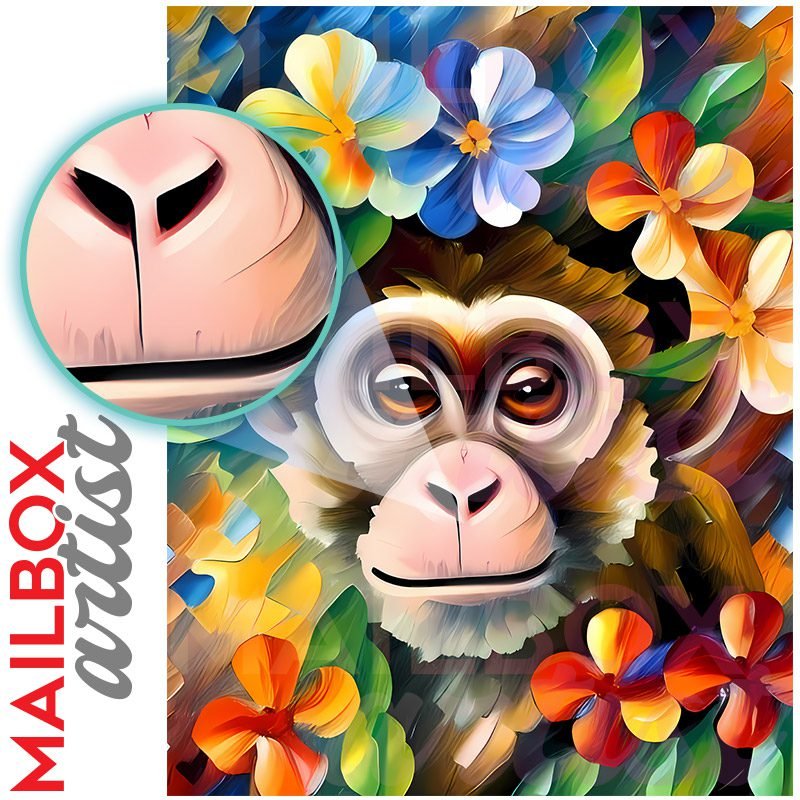 This Cute Monkey with Flowers mailbox design was created by Krisztina Soos