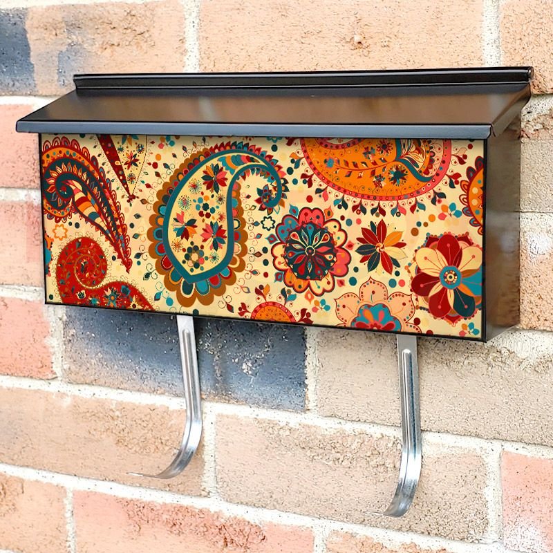 Applying your Cute Paisley Design townhouse / ranch mailbox cover it’s pretty easy to convert your mailbox to a special and unique item. These covers require a flat surface, so they work with townhouse / ranch mailboxes that do not have any embossed decoration or signs. Magnetic mailbox covers work with steel boxes, for aluminum and plastic boxes we offer the self-adhesive vinyl covers. In case your mailbox doesn’t work with these covers, you can purchase the preinstalled cover on a brand new mailbox as well. Also, you can create your custom townhouse / ranch mailbox cover using you own pictures, adding your name, street number, etc.