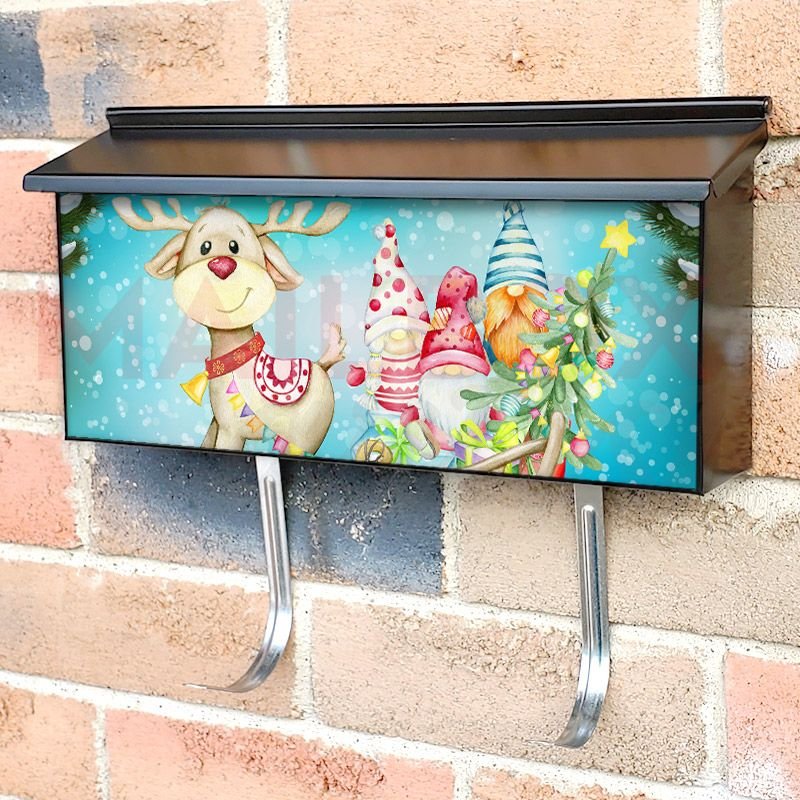 Applying your Cute Reindeer and Gnomes townhouse / ranch mailbox cover it’s pretty easy to convert your mailbox to a special and unique item. These covers require a flat surface, so they work with townhouse / ranch mailboxes that do not have any embossed decoration or signs. Magnetic mailbox covers work with steel boxes, for aluminum and plastic boxes we offer the self-adhesive vinyl covers. In case your mailbox doesn’t work with these covers, you can purchase the preinstalled cover on a brand new mailbox as well. Also, you can create your custom townhouse / ranch mailbox cover using you own pictures, adding your name, street number, etc.