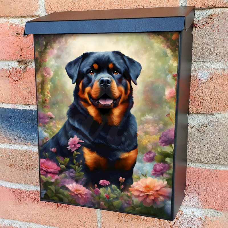 This Cute Rottweiler and Flowers mailbox design was created by Krisztina Soos