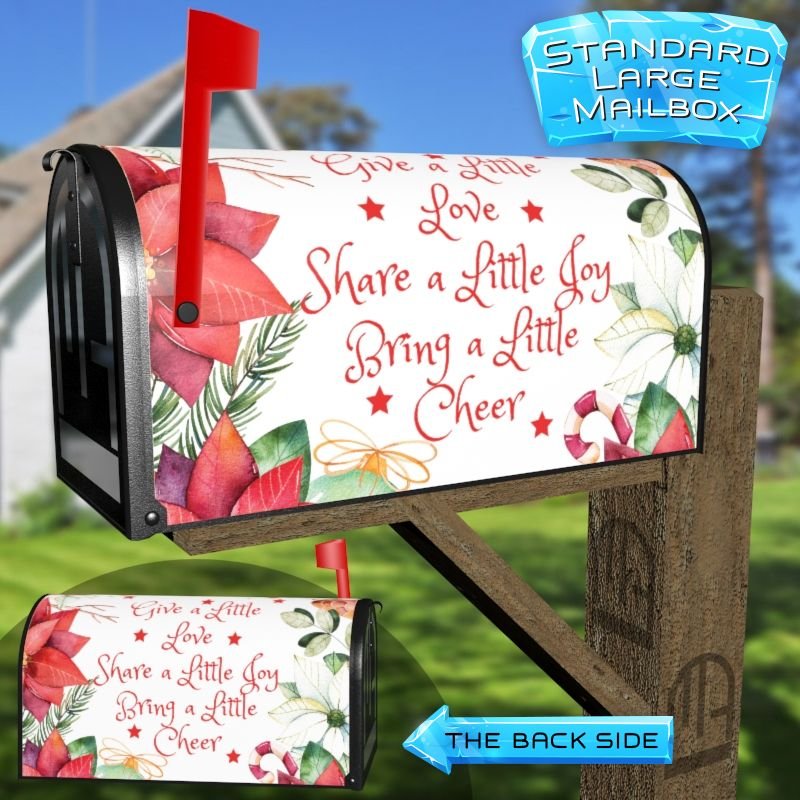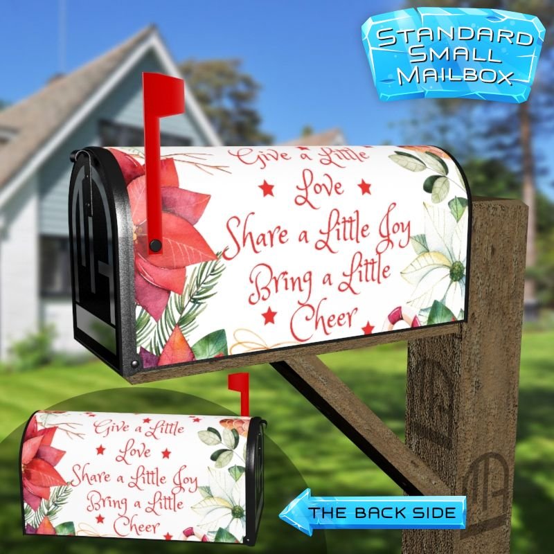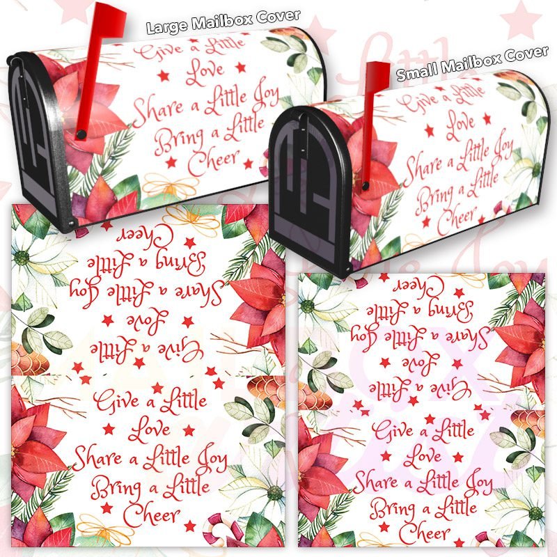 Dressing up your rural farm mailbox with the Cute Saying with Poinsettias mailbox cover is an easy way to convert it into a unique and special item. These covers require a smooth surface, so they are compatible with rural farm mailboxes that do not have any embossed decorations or signs. Magnetic mailbox covers work with steel boxes only, while self-adhesive vinyl covers are available for aluminum, plastic and steel boxes. If your mailbox is not compatible with these covers, you can purchase a brand new mailbox with a preinstalled cover. Additionally, you have the option to create a custom rural farm mailbox cover with your own pictures, name, street number, etc.