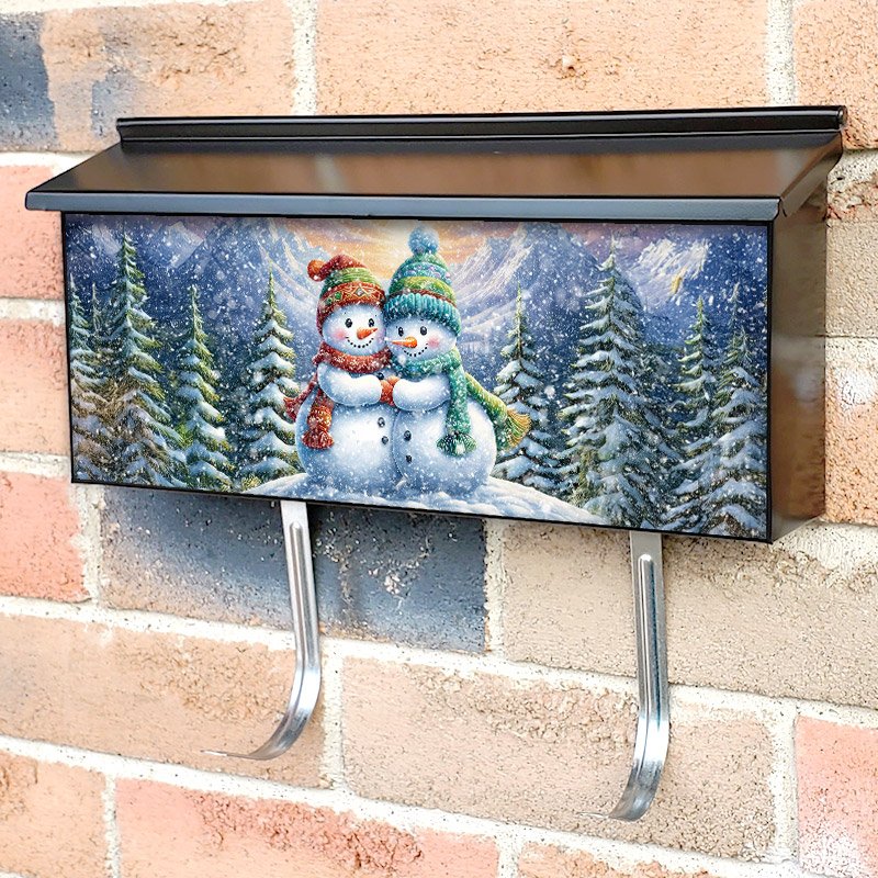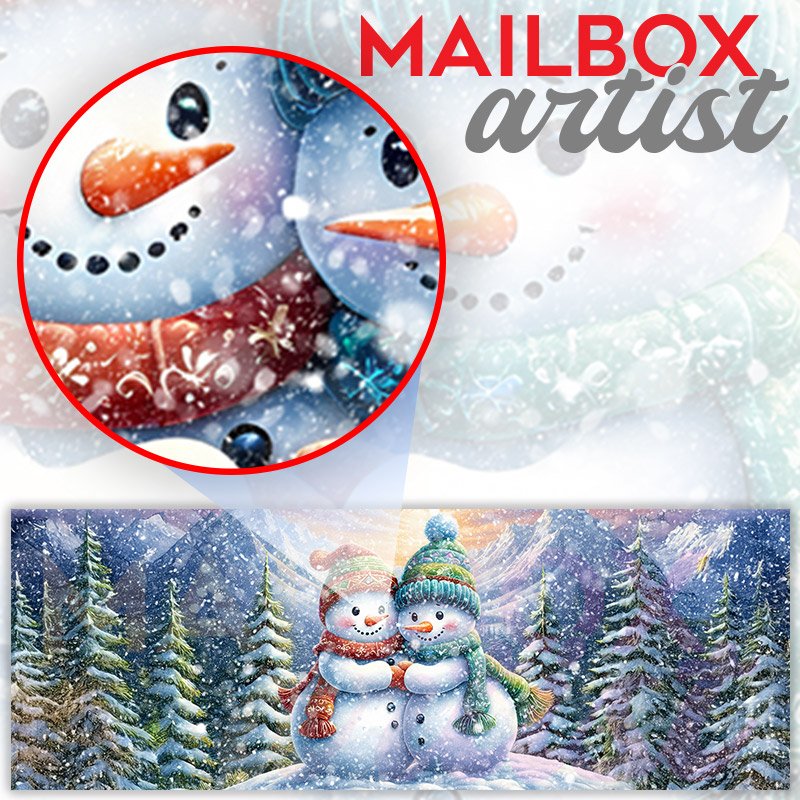 Applying your Cute Snowman Couple townhouse / ranch mailbox cover it’s pretty easy to convert your mailbox to a special and unique item. These covers require a flat surface, so they work with townhouse / ranch mailboxes that do not have any embossed decoration or signs. Magnetic mailbox covers work with steel boxes, for aluminum and plastic boxes we offer the self-adhesive vinyl covers. In case your mailbox doesn’t work with these covers, you can purchase the preinstalled cover on a brand new mailbox as well. Also, you can create your custom townhouse / ranch mailbox cover using you own pictures, adding your name, street number, etc.