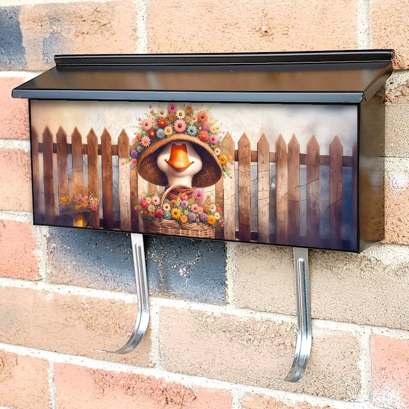 Applying your Cute Spring Goose townhouse / ranch mailbox cover it’s pretty easy to convert your mailbox to a special and unique item. These covers require a flat surface, so they work with townhouse / ranch mailboxes that do not have any embossed decoration or signs. Magnetic mailbox covers work with steel boxes, for aluminum and plastic boxes we offer the self-adhesive vinyl covers. In case your mailbox doesn’t work with these covers, you can purchase the preinstalled cover on a brand new mailbox as well. Also, you can create your custom townhouse / ranch mailbox cover using you own pictures, adding your name, street number, etc.