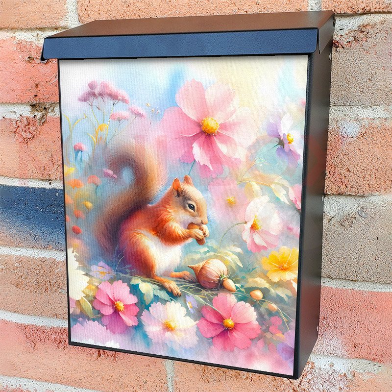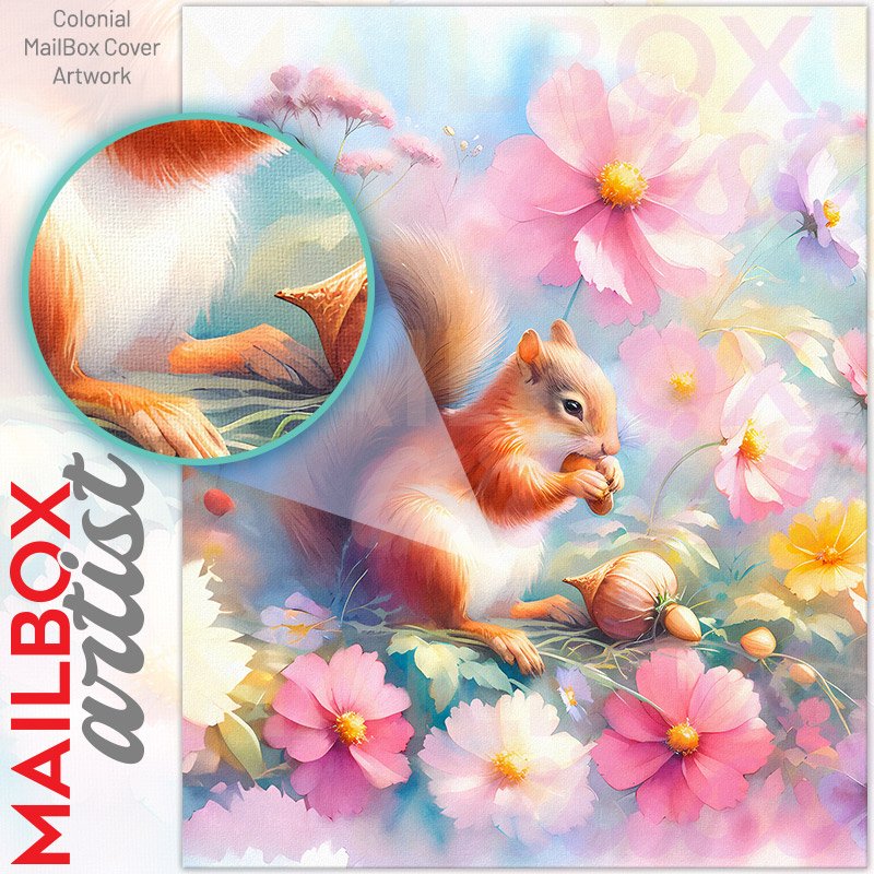 With this Cute Summer Squirrel colonial mailbox cover it’s pretty easy to convert your mailbox to a special and unique item. These covers require a flat surface, so they work with colonial mailboxes that do not have any embossed decoration or signs. Magnetic mailbox covers work with steel colonial boxes only, while self-adhesive vinyl covers are available for aluminum, plastic and steel boxes. We also offer both self-adhesive and magnetic covers with regular opaque white vinyl or reflective vinyl, which works similarly to license plates or road signs. The reflective option makes the entire cover’s surface reflective, ensuring visibility at night. In case your mailbox doesn’t work with these covers, you can purchase the preinstalled cover on a brand new mailbox as well. Also, you can create your custom colonial mailbox cover using you own pictures, adding your name, street number, etc.