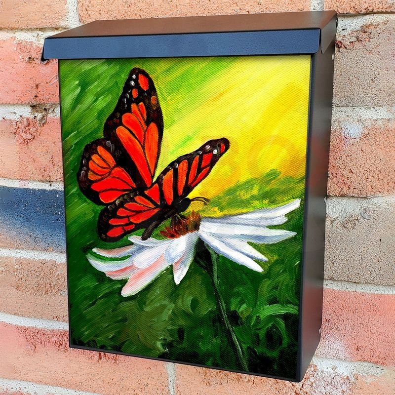 With this Daisy and a Butterfly colonial mailbox cover it’s pretty easy to convert your mailbox to a special and unique item. These covers require a flat surface, so they work with colonial mailboxes that do not have any embossed decoration or signs. In case your mailbox doesn’t work with these covers, you can purchase the preinstalled cover on a brand new mailbox as well. Also, you can create your custom colonial mailbox cover using you own pictures, adding your name, street number, etc.