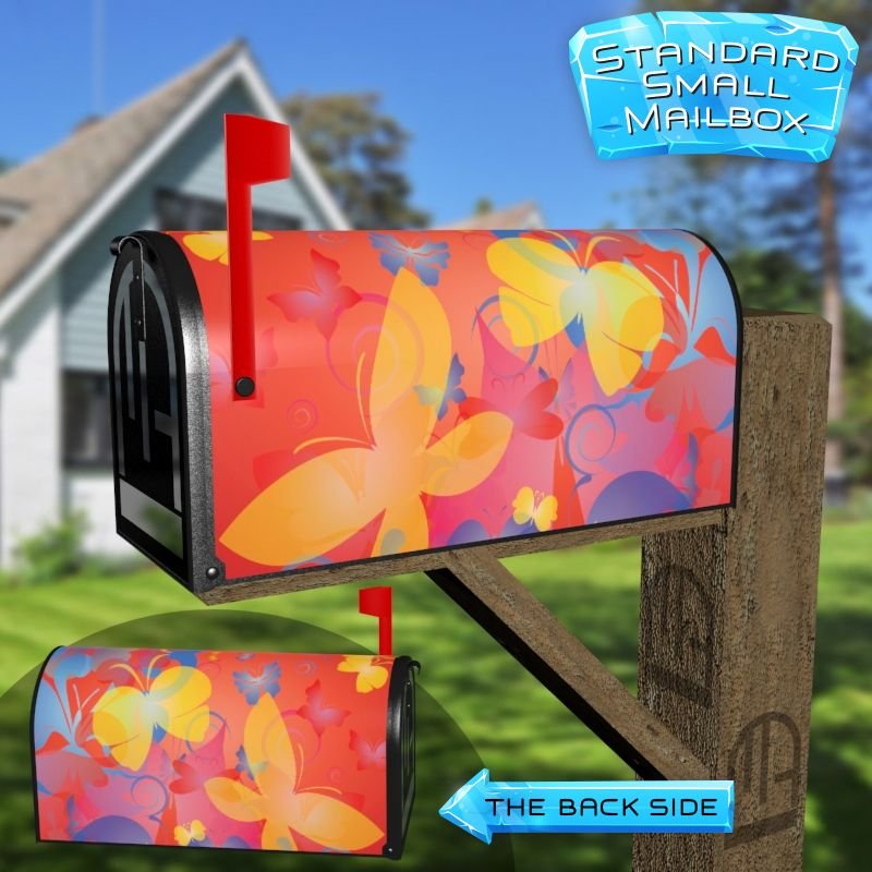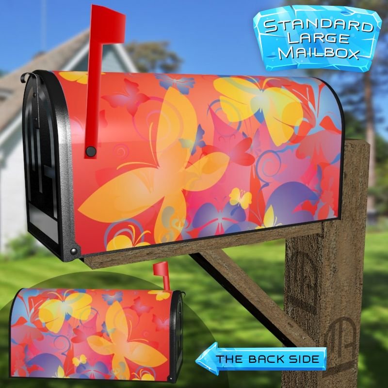 Dressing up your rural farm mailbox with the Dancing Butterflies mailbox cover is an easy way to convert it into a unique and special item. These covers require a smooth surface, so they are compatible with rural farm mailboxes that do not have any embossed decorations or signs. Magnetic mailbox covers work with steel boxes only, while self-adhesive vinyl covers are available for aluminum, plastic and steel boxes. If your mailbox is not compatible with these covers, you can purchase a brand new mailbox with a preinstalled cover. Additionally, you have the option to create a custom rural farm mailbox cover with your own pictures, name, street number, etc.