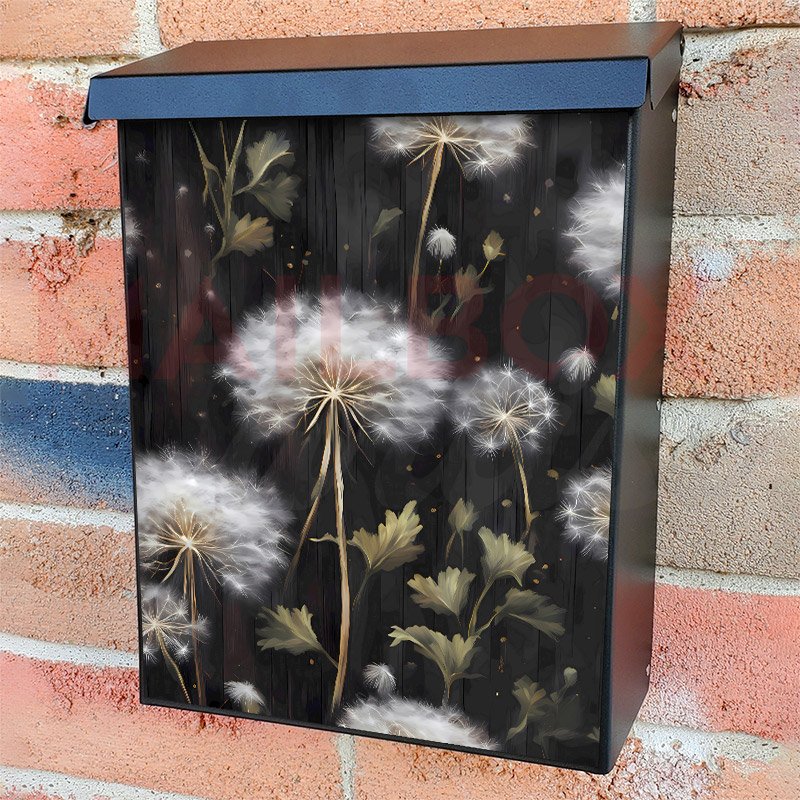 This Dandelions on Dark Wood mailbox design was created by Krisztina Soos