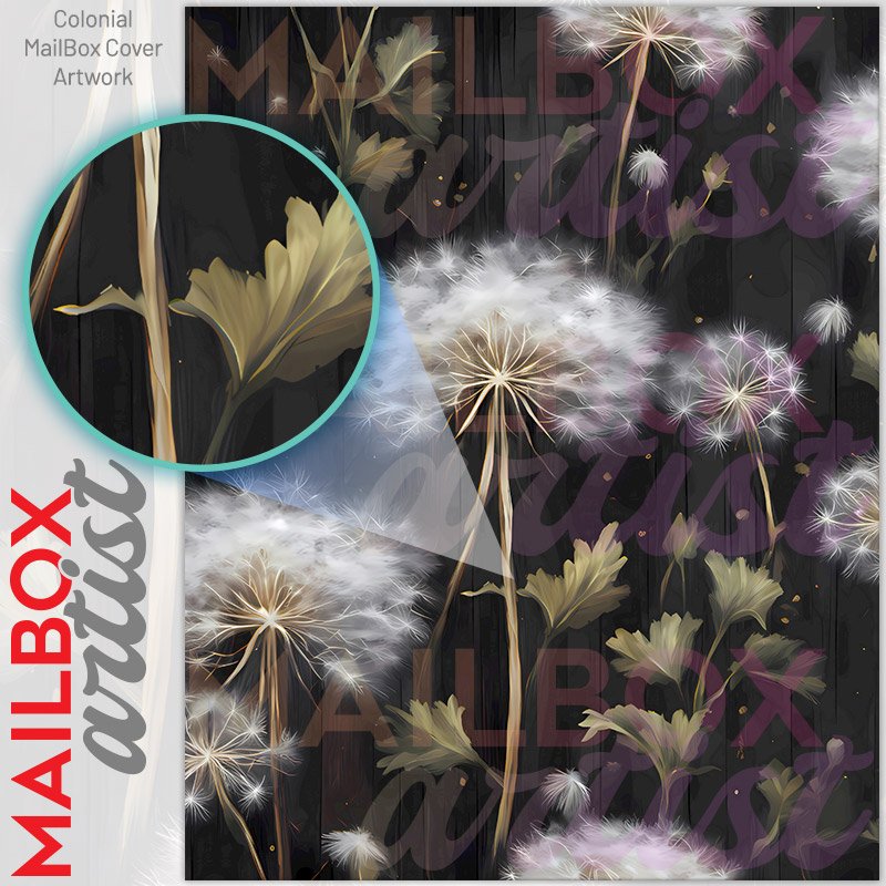 Dandelions on Dark Wood Colonial Mailbox Cover