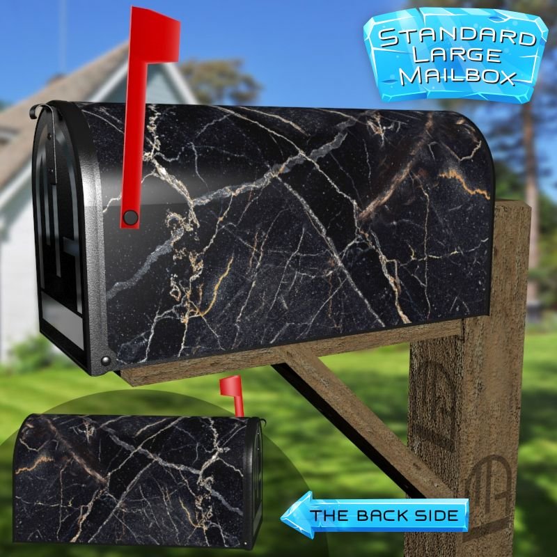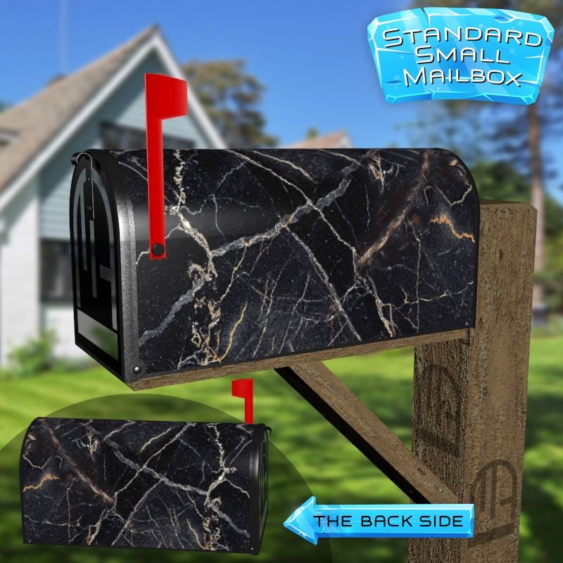 Dressing up your rural farm mailbox with the Dark Marble Design mailbox cover is an easy way to convert it into a unique and special item. These covers require a smooth surface, so they are compatible with rural farm mailboxes that do not have any embossed decorations or signs. Magnetic mailbox covers work with steel boxes only, while self-adhesive vinyl covers are available for aluminum, plastic and steel boxes. If your mailbox is not compatible with these covers, you can purchase a brand new mailbox with a preinstalled cover. Additionally, you have the option to create a custom rural farm mailbox cover with your own pictures, name, street number, etc.