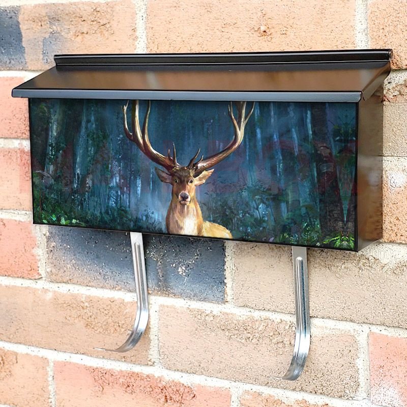 Applying your Deer in a Deep Forest townhouse / ranch mailbox cover it’s pretty easy to convert your mailbox to a special and unique item. These covers require a flat surface, so they work with townhouse / ranch mailboxes that do not have any embossed decoration or signs. Magnetic mailbox covers work with steel boxes, for aluminum and plastic boxes we offer the self-adhesive vinyl covers. In case your mailbox doesn’t work with these covers, you can purchase the preinstalled cover on a brand new mailbox as well. Also, you can create your custom townhouse / ranch mailbox cover using you own pictures, adding your name, street number, etc.
