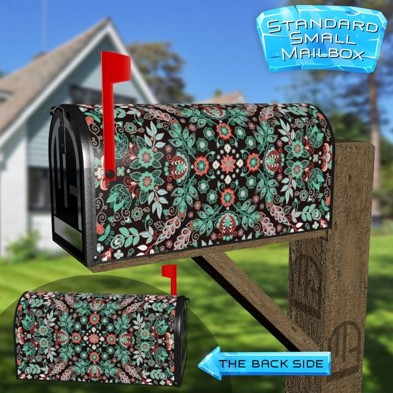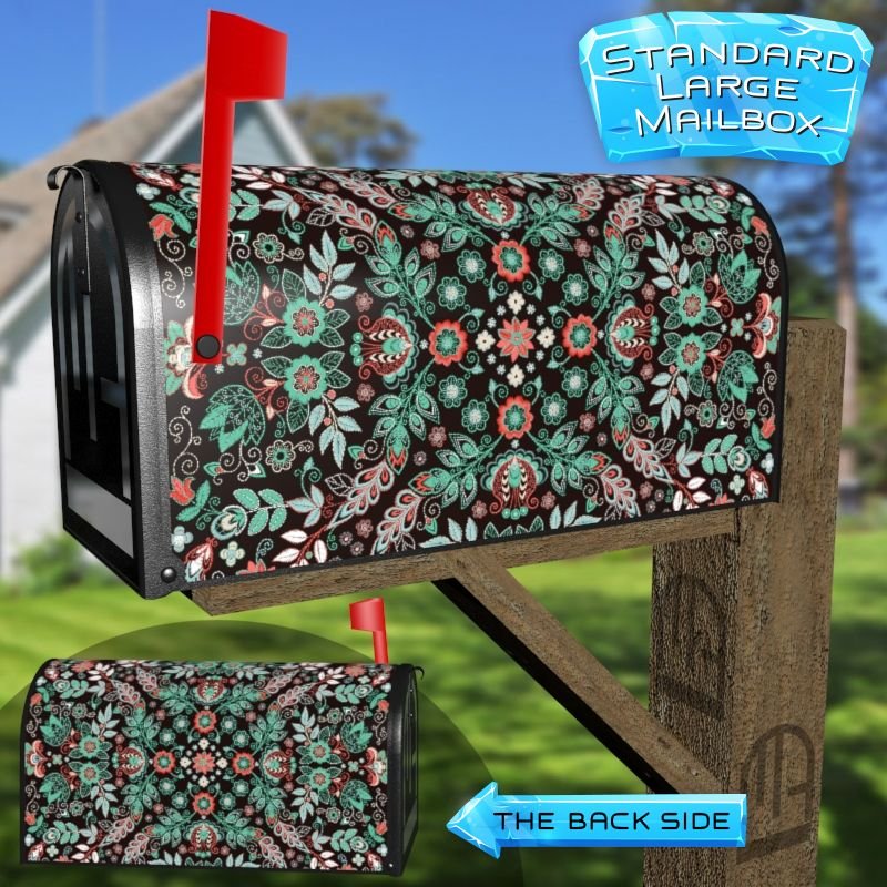 Dressing up your rural farm mailbox with the Delicate Folk Flowers mailbox cover is an easy way to convert it into a unique and special item. These covers require a smooth surface, so they are compatible with rural farm mailboxes that do not have any embossed decorations or signs. Magnetic mailbox covers work with steel boxes only, while self-adhesive vinyl covers are available for aluminum, plastic and steel boxes. If your mailbox is not compatible with these covers, you can purchase a brand new mailbox with a preinstalled cover. Additionally, you have the option to create a custom rural farm mailbox cover with your own pictures, name, street number, etc.