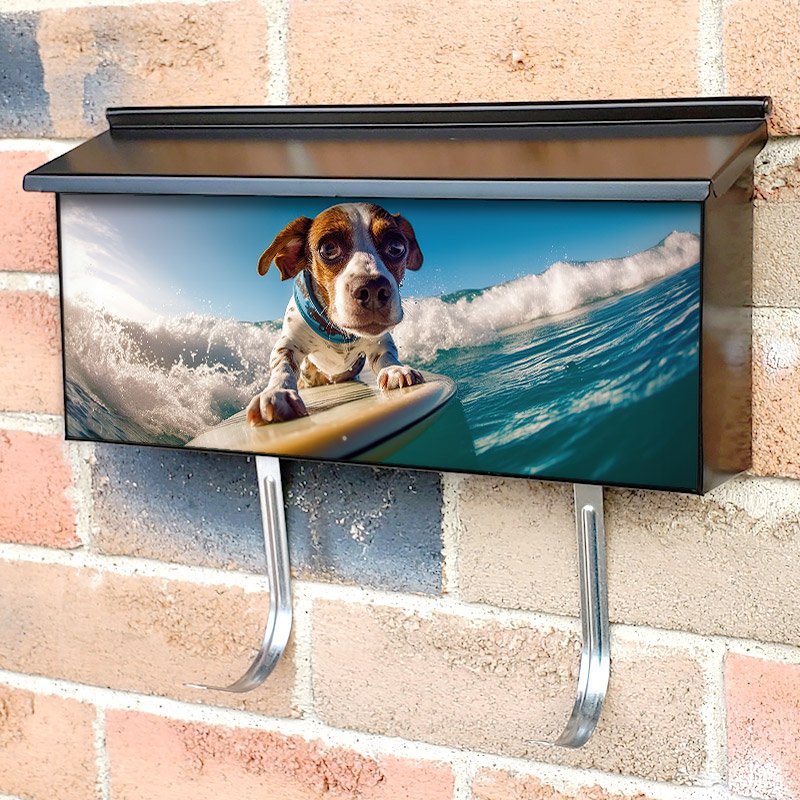 Applying your Dog Surfing townhouse / ranch mailbox cover it’s pretty easy to convert your mailbox to a special and unique item. These covers require a flat surface, so they work with townhouse / ranch mailboxes that do not have any embossed decoration or signs. Magnetic mailbox covers work with steel boxes, for aluminum and plastic boxes we offer the self-adhesive vinyl covers. In case your mailbox doesn’t work with these covers, you can purchase the preinstalled cover on a brand new mailbox as well. Also, you can create your custom townhouse / ranch mailbox cover using you own pictures, adding your name, street number, etc.