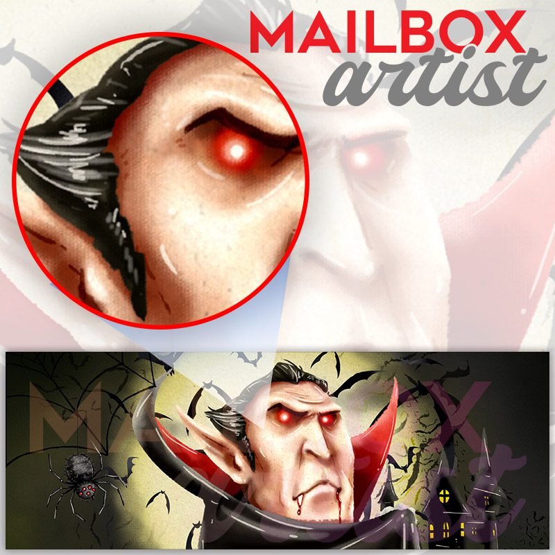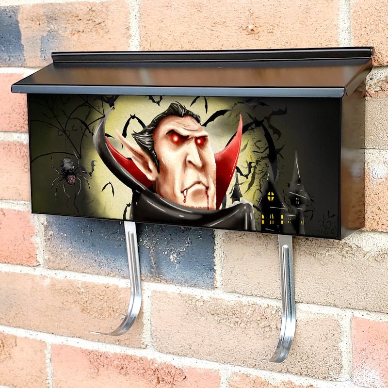 Applying your Dracula with Bats townhouse / ranch mailbox cover it’s pretty easy to convert your mailbox to a special and unique item. These covers require a flat surface, so they work with townhouse / ranch mailboxes that do not have any embossed decoration or signs. Magnetic mailbox covers work with steel boxes, for aluminum and plastic boxes we offer the self-adhesive vinyl covers. In case your mailbox doesn’t work with these covers, you can purchase the preinstalled cover on a brand new mailbox as well. Also, you can create your custom townhouse / ranch mailbox cover using you own pictures, adding your name, street number, etc.
