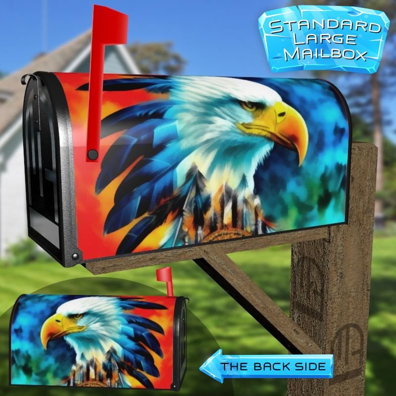 Dressing up your rural farm mailbox with the Eagle with Dreamcatcher #13 mailbox cover is an easy way to convert it into a unique and special item. These covers require a smooth surface, so they are compatible with rural farm mailboxes that do not have any embossed decorations or signs. Magnetic mailbox covers work with steel boxes only, while self-adhesive vinyl covers are available for aluminum, plastic and steel boxes. If your mailbox is not compatible with these covers, you can purchase a brand new mailbox with a preinstalled cover. Additionally, you have the option to create a custom rural farm mailbox cover with your own pictures, name, street number, etc.