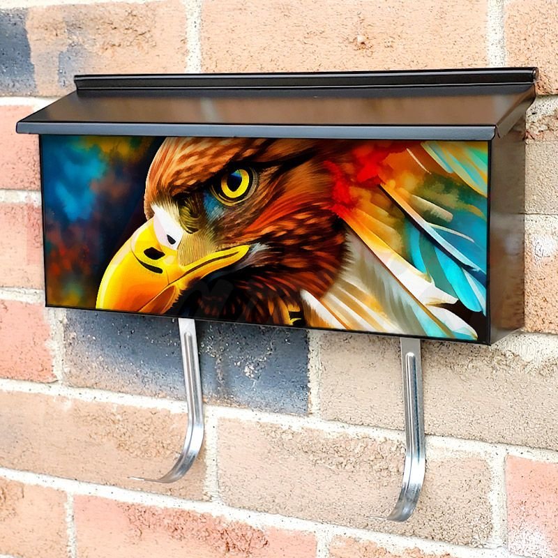 Applying your Eagle with Dreamcatcher #3 townhouse / ranch mailbox cover it’s pretty easy to convert your mailbox to a special and unique item. These covers require a flat surface, so they work with townhouse / ranch mailboxes that do not have any embossed decoration or signs. Magnetic mailbox covers work with steel boxes, for aluminum and plastic boxes we offer the self-adhesive vinyl covers. In case your mailbox doesn’t work with these covers, you can purchase the preinstalled cover on a brand new mailbox as well. Also, you can create your custom townhouse / ranch mailbox cover using you own pictures, adding your name, street number, etc.