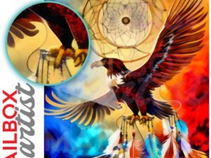 With this Eagle with Dreamcatcher #5 colonial mailbox cover it’s pretty easy to convert your mailbox to a special and unique item. These covers require a flat surface, so they work with colonial mailboxes that do not have any embossed decoration or signs. In case your mailbox doesn’t work with these covers, you can purchase the preinstalled cover on a brand new mailbox as well. Also, you can create your custom colonial mailbox cover using you own pictures, adding your name, street number, etc.
