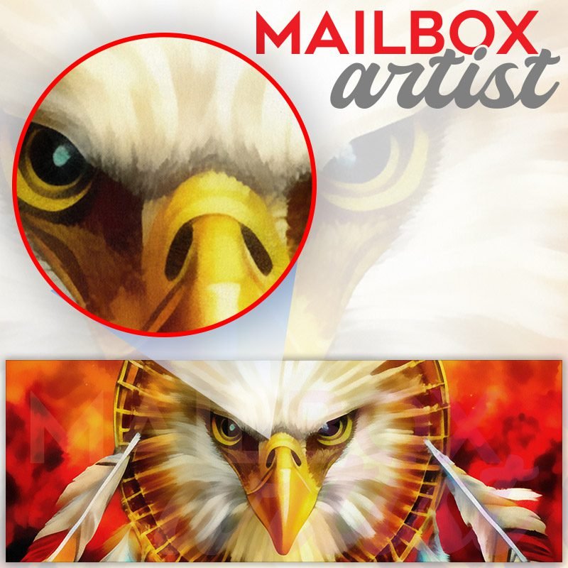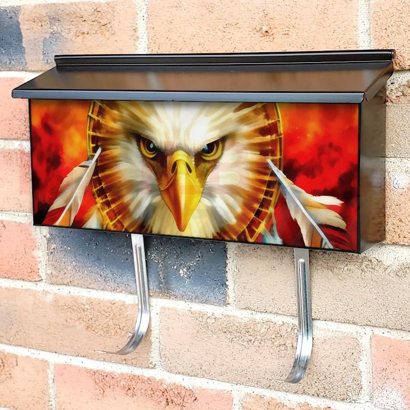 Applying your Eagle with Dreamcatcher #7 townhouse / ranch mailbox cover it’s pretty easy to convert your mailbox to a special and unique item. These covers require a flat surface, so they work with townhouse / ranch mailboxes that do not have any embossed decoration or signs. Magnetic mailbox covers work with steel boxes, for aluminum and plastic boxes we offer the self-adhesive vinyl covers. In case your mailbox doesn’t work with these covers, you can purchase the preinstalled cover on a brand new mailbox as well. Also, you can create your custom townhouse / ranch mailbox cover using you own pictures, adding your name, street number, etc.