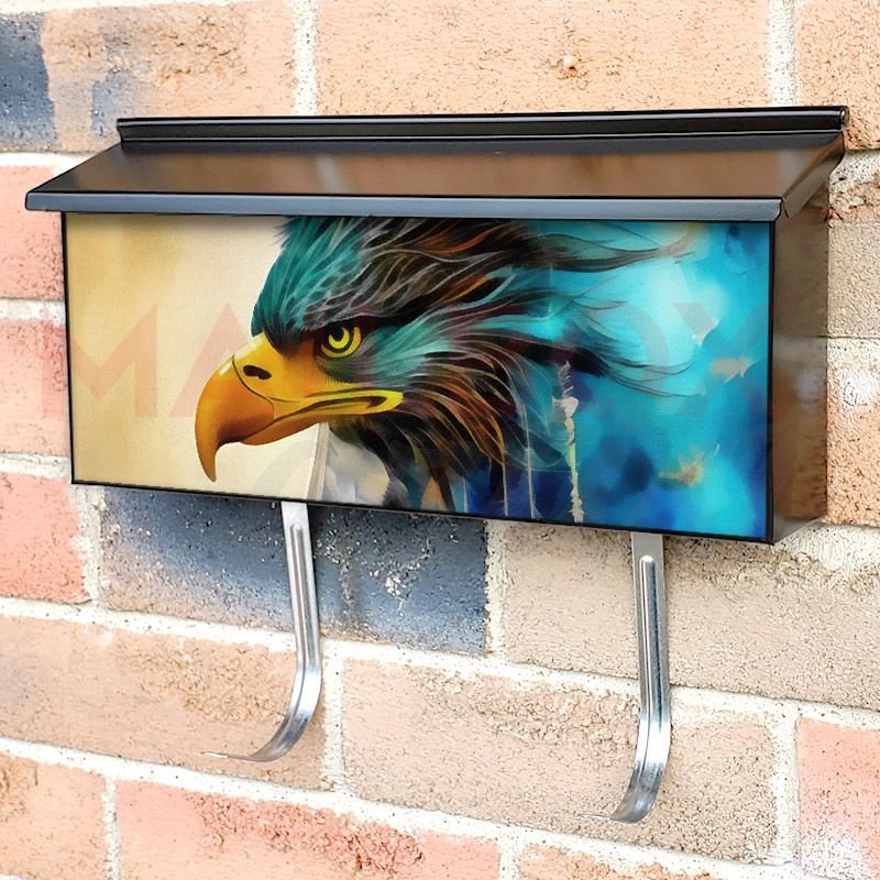 Applying your Eagle with Dreamcatcher #9 townhouse / ranch mailbox cover it’s pretty easy to convert your mailbox to a special and unique item. These covers require a flat surface, so they work with townhouse / ranch mailboxes that do not have any embossed decoration or signs. Magnetic mailbox covers work with steel boxes, for aluminum and plastic boxes we offer the self-adhesive vinyl covers. In case your mailbox doesn’t work with these covers, you can purchase the preinstalled cover on a brand new mailbox as well. Also, you can create your custom townhouse / ranch mailbox cover using you own pictures, adding your name, street number, etc.