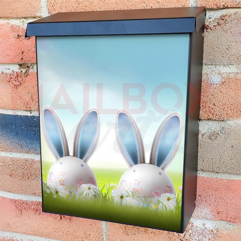 With this Easter Bunny And Easter Eggs On A Meadow 2 colonial mailbox cover it’s pretty easy to convert your mailbox to a special and unique item. These covers require a flat surface, so they work with colonial mailboxes that do not have any embossed decoration or signs. Magnetic mailbox covers work with steel colonial boxes only, while self-adhesive vinyl covers are available for aluminum, plastic and steel boxes. We also offer both self-adhesive and magnetic covers with regular opaque white vinyl or reflective vinyl, which works similarly to license plates or road signs. The reflective option makes the entire cover’s surface reflective, ensuring visibility at night. In case your mailbox doesn’t work with these covers, you can purchase the preinstalled cover on a brand new mailbox as well. Also, you can create your custom colonial mailbox cover using you own pictures, adding your name, street number, etc.