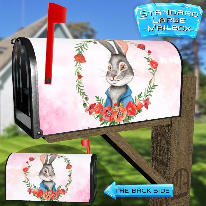 Dressing up your rural farm mailbox with the Easter Bunny with a Poppy Wreath mailbox cover is an easy way to convert it into a unique and special item. These covers require a smooth surface, so they are compatible with rural farm mailboxes that do not have any embossed decorations or signs. Magnetic mailbox covers work with steel boxes only, while self-adhesive vinyl covers are available for aluminum, plastic and steel boxes. If your mailbox is not compatible with these covers, you can purchase a brand new mailbox with a preinstalled cover. Additionally, you have the option to create a custom rural farm mailbox cover with your own pictures, name, street number, etc.