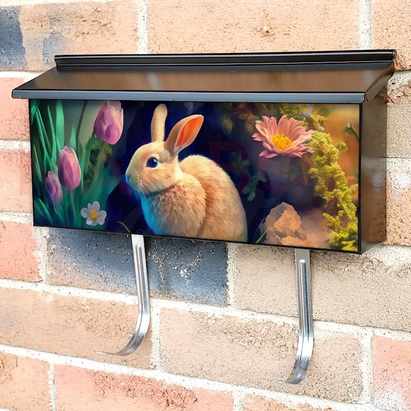 Applying your Easter Bunny with Tulips and Eggs #2 townhouse / ranch mailbox cover it’s pretty easy to convert your mailbox to a special and unique item. These covers require a flat surface, so they work with townhouse / ranch mailboxes that do not have any embossed decoration or signs. Magnetic mailbox covers work with steel boxes, for aluminum and plastic boxes we offer the self-adhesive vinyl covers. In case your mailbox doesn’t work with these covers, you can purchase the preinstalled cover on a brand new mailbox as well. Also, you can create your custom townhouse / ranch mailbox cover using you own pictures, adding your name, street number, etc.